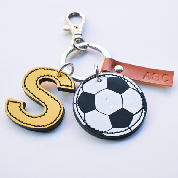 部活やクラブチームの卒団記念にぴったりなレザーキーホルダーです。